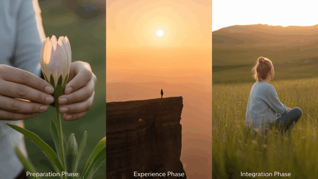 マインドフルネスの要素を含むこのプロセスは、判断せずに現在の瞬間を経験することを促します。シロシビン体験中、多くの人が「今ここ」への深い気づきを体験しますが、この感覚を日常生活でも維持することが治療効果の持続につながります。
