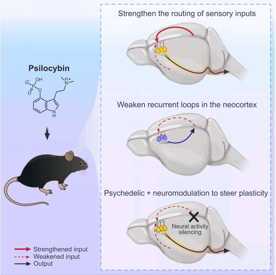 Jiang, Q., Shao, L., Yao, S., Savalia, N. K., Gilbert, A. D., Davoudian, P. A., Nothnagel, J. D., Tian, G., Hung, T. S., Lai, H., Beier, K. T., Zeng, H., & Kwan, A. C. (2025). Psilocybin triggers an activity-dependent rewiring of large-scale cortical networks. bioRxiv (Cold Spring Harbor Laboratory). https://doi.org/10.1101/2025.08.06.668927