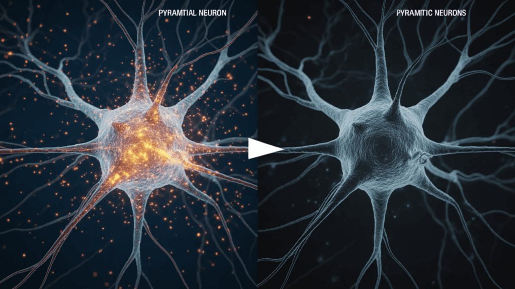 大脳皮質には、大きく分けて二種類の主要な錐体細胞(興奮性神経細胞)が存在します。一つは「PT神経細胞」と呼ばれ、大脳皮質から脳幹や脊髄などの皮質下領域に信号を送ります。もう一つは「IT神経細胞」で、こちらは大脳皮質内の他の領域や対側半球に信号を送ります。