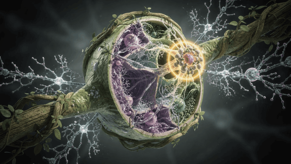 アヤワスカに含まれる主要な精神活性成分であるDMT(N,N-ジメチルトリプタミン)は、脳内のシグマ1受容体(SIGMAR1)と呼ばれるタンパク質を活性化することが知られています。このシグマ1受容体は単なる受容体ではなく、細胞の生存を促進し、神経保護作用、神経可塑性の向上、さらには免疫調節にまで関わる多機能な分子シャペロン(他のタンパク質の働きを助ける存在)です。