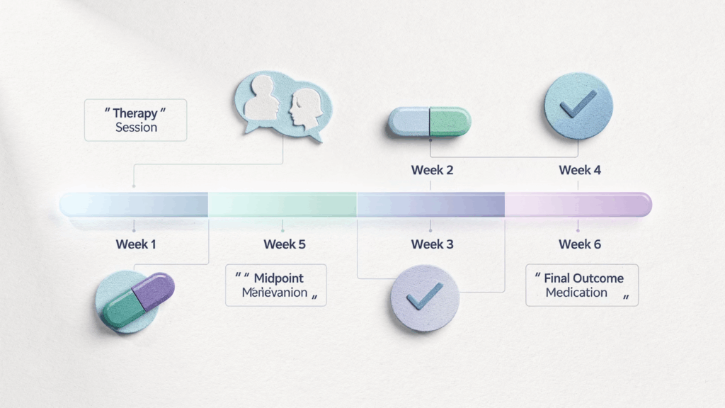 4週目に1回目のシロシビン投与(15 mg)が行われ、6週目に2回目の投与(15 mgまたは25 mg)が実施されました。2回目の用量は、1回目の反応の強さに基づいて決定されます。実際には参加者20名中18名が25 mgの高用量を、2名が再び15 mgの中用量を受けました。