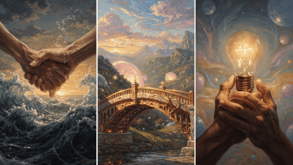 タッチは、内的世界での困難な体験に直面したとき、完全に「外に出る」ことなく現実とのつながりを保つための「橋」のような役割を果たしました。たとえば、ある女性参加者は、タッチのおかげで内的世界にとどまりながらも外の世界が存在することを感じ取れたと述べています。つまり、内側での治療的な作業を中断せずに、安心感だけを得ることができたのです。