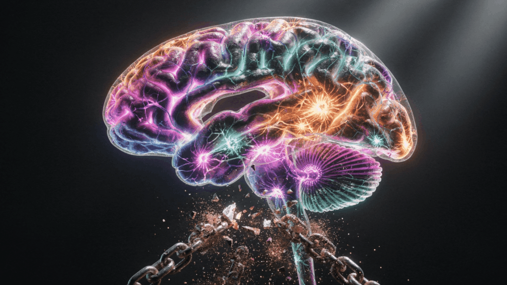 次に、心理的柔軟性の向上があります。心理的柔軟性とは、固定化された思考や行動パターンから離れて、新しい視点や対処法を柔軟に取り入れる能力のことです。長年の喫煙習慣は、「ストレスを感じたらタバコを吸う」「食後は一服する」といった自動的な行動パターンとして脳に深く刻まれています。シロシビンは、このような固着したパターンを一時的に「リセット」し、新しい行動を選択しやすくする可能性が示唆されています。