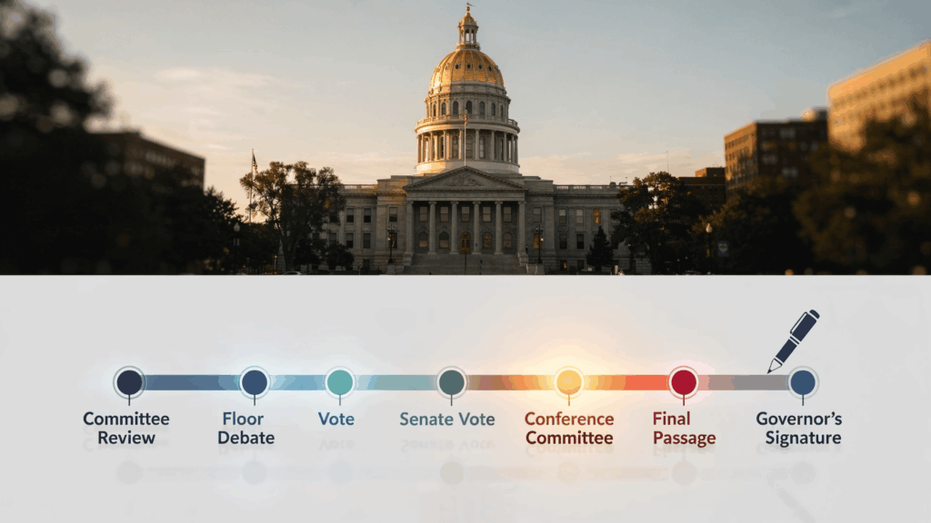 HB26-1325は現在、コロラド州下院の保健人間サービス委員会に付託されています。法律として成立するためには、委員会審査、下院本会議、上院、そして知事の署名というプロセスを経る必要があります。